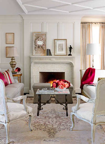编辑点评:在这间标志的阿拉巴马的卧室,花饰窗格火炉前没有选择传统家具,尽管我们计划放一对传统的的沙发在前面,我们还是选择了古式的法国坐卧两用长椅,面对着小沙发。设计师说:“样式是平衡和正式的,但是比搭配套的家具更有趣。”这家公司还替换了重重的石灰岩,为了使整体感觉更加精致。