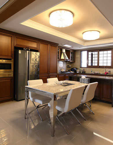 厨房的地面不可高过厅、房等地面,这一方面是可以防止污水倒流;其次是由于主次有别,厨房不可凌驾于厅、房之上;再次,从厨房入厅奉食,应步步高升,反之则有退财之虞。