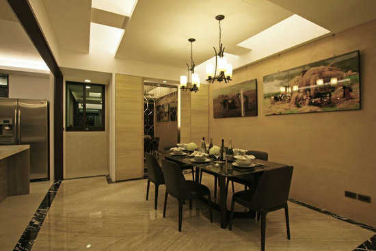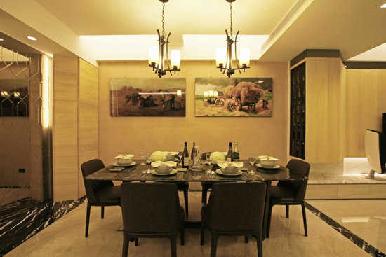 编辑点评:悬垂餐厅上方的造型灯具,具有变化居家光影氛围的画龙点睛之效。
