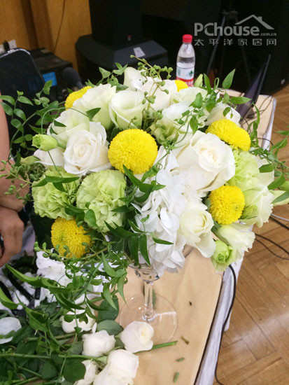 现场演示插一盆家居餐桌花,演示的同时与现场互动,让气氛变得活跃。