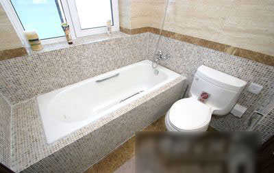 正确的安装应该是浴帘安装到浴缸的内侧,使用的时候浴帘下垂到浴缸内部,这样才会起到应有的作用,但很多业主装修的时候为了美观都忽略了这点。