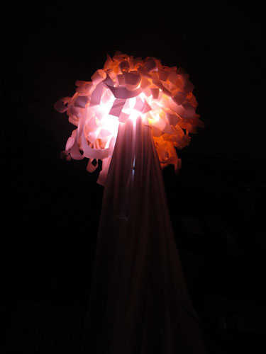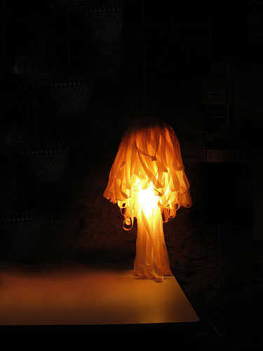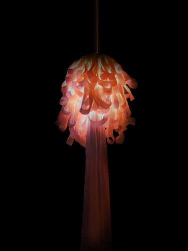 阿根廷艺术总监 Paula Benvegnu和英国设计师 Tristan Cochrane在巴塞罗那合作设计了这个与众不同的水母灯。水母灯代表海洋,设计师有意营造一种独特的梦幻般的超现实氛围。灯具是用200-300米的彩带手工制作的,利用光的不同强度和颜色创造出一个微妙的感觉,像是来到了潘朵拉的盒子里。
