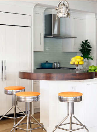 编辑点评:在厨房出设置圆形吧台,不仅起到分隔空间的作用,也充分利用的这一处小角落,吧台圆形处理,考虑到安全性与美观度。