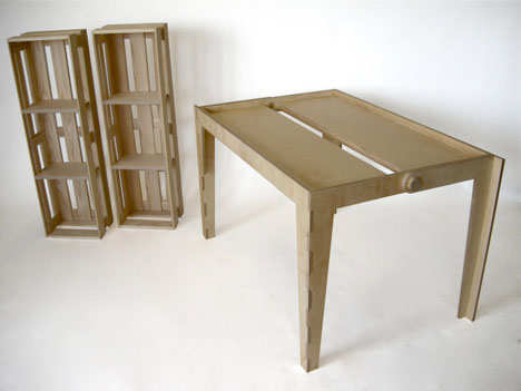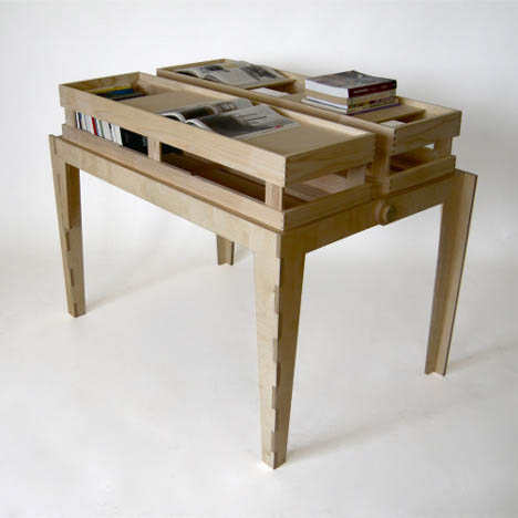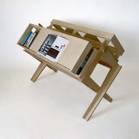 伦敦城市大学的毕业生Fotis Evans最近为伦敦的Somerset House设计了一款书架与书桌的组合。与我们平时看到的“书架+书桌”的组合不同,这款组合中的书架被轻松地拆卸或者组装,书桌也可以随时根据你的需要进行“方桌→长桌”的变换。