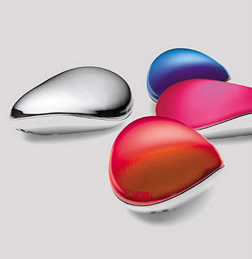 当处于关闭状态,拥有银色金属的优雅质感,如一颗凝固的银色豆子,在手中沉甸甸。打开开关,它的上半部便会幻化出透亮的彩色光芒,成为夜晚最为闪亮的星星。