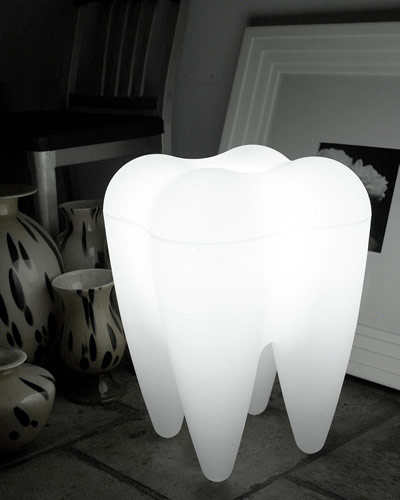 小编推介:这款灯使用强化塑胶材料制成,平时可以作为小凳子来使用;最多可以承受80KG的重量,无论您是纤纤淑女或是五尺男儿之躯,它都尽可能承受您的重量。坐在这样的一颗牙齿椅上,会让您的想象力大大出位一把。