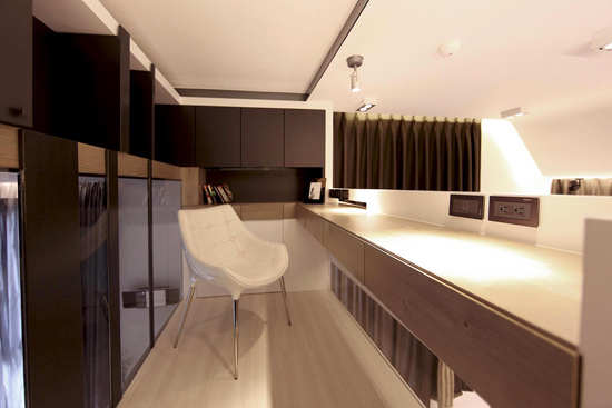 编辑点评:不需要用到的时候,只要把桌台轻轻一推,便将其嵌进了墙壁,为空间省出不少面积!