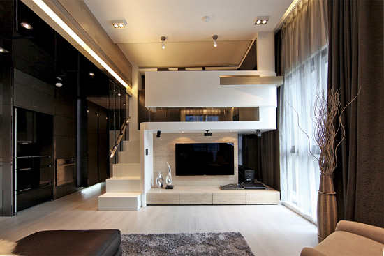 编辑点评:如积木般搭构的电视机墙,时尚美观且不失简约实用,更将LOFT的一面装饰得恰到好处,值得细细品味。