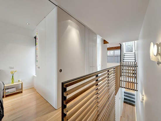 编辑点评:这是经过楼梯到达二楼的过道,玻璃窗的透明与镂空扶手的通透相呼应,可见,在小户型装修中,要使得空间不拥挤,可以以具有通透感的玻璃与镂空材料代替水泥墙。