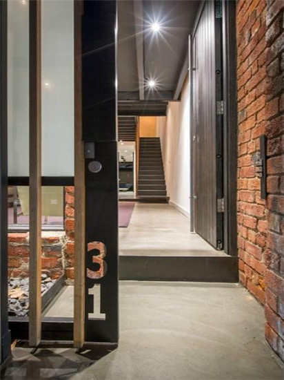 编辑点评:进门的玄关处便可见通往二楼的楼梯,狭长的走道在视觉上得到往上的延伸。