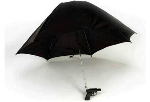 亚历克斯·乌伦设计室设计的水枪雨伞,通过凹陷的顶部收集雨水,并通过伞柄把水输送到枪膛里,因此,只要下雨,你永远有用不完“子弹”。