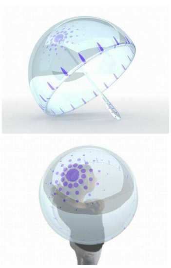 这种充气的云伞是一个独特的模型。要想合拢它,只需不断推拉伞柄里的储气器就可以了。有了这种伞,你也许将成为唯一一个在雨天有白云漂浮在头顶的人。