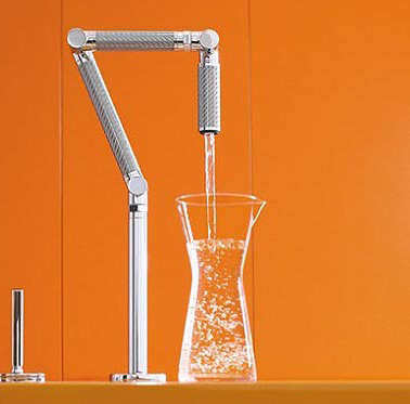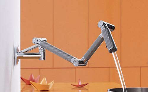 科勒的这款壁挂式厨房龙头在功能上跟上一款异曲同工,灵活弯曲的造型,便于厨房各个角度的用水。而且这款还是挂壁式的龙头,更加具有创意。