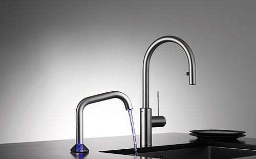 它的控制方法非常简单,点击一次,出冷水(蓝色),两次暖水(橙),三次热水(红)。内置的LED灯让水流呈现不同的颜色,提示你水的温度。10秒后,水会自动关闭。 这款水龙头还具有清洁模式,可以自动进行清洁,只要通过较长的触摸激活它即可。
