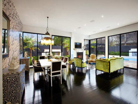 编辑点评:具有线条感的落地玻璃设计让室内充分采光同时也方便欣赏室外风景;客厅就像置身于一个巨型的长方形盒子里,椅子的对称摆设让空间的平衡感更强烈。