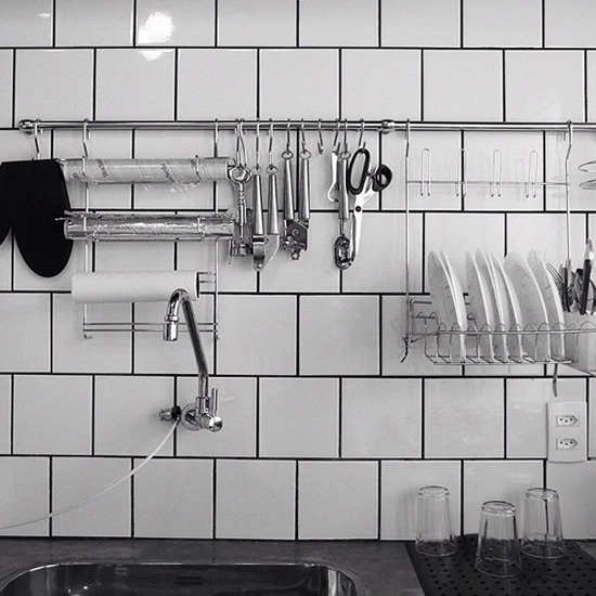 编辑点评:在墙上增设挂杆,充分地开辟了收纳空间,让厨房看起来更加整洁干净。镂空的隔板让碗碟的水可以直接滴落到地下水道,避免了隔板长期处于潮湿状态。