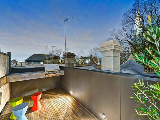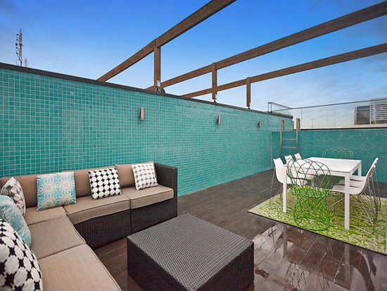 编辑点评:3平米的顶层空间利用木板围城一个休闲乘凉的阳台,细长的平台,开阔的视野,再配上几张彩色的圆凳子,别有一番风味。