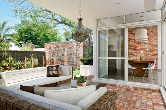 编辑点评:室外休闲区与室内餐厅区域以落地玻璃门作隔断,简陋的砖头墙壁和地板使二厅在视觉上既相连又有所区别;墙壁地板充满工业气息,而沙发和灯饰却充满了时代感,二者的碰撞与融合带来视觉上的享受。