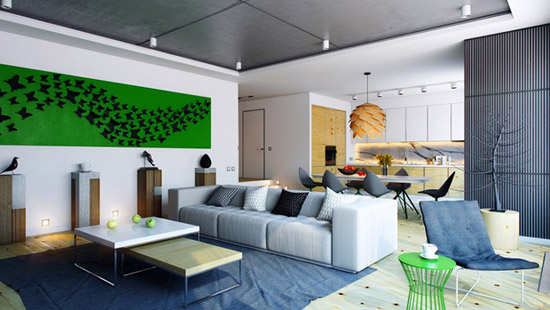 舒适兼具设计感的公寓 灰色调中的清新绿