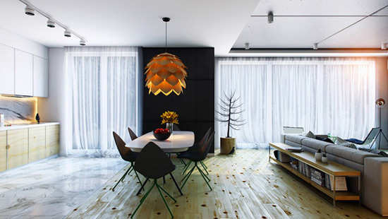 想在自然感十足的居家气息中找寻设计感吗?俄罗斯室内设计师 Pavel Vetrov 设计了一款兼具舒适度和设计感的公寓,让你体验不一样的居家风格。将松木独特的纹路用在地板和牆面上,不仅延伸了整体空间视觉,更有天然的家饰功能。注意到客厅的电视牆吗?水泥色的牆面印上街头风的人像,是不是让灰色牆面活泼许多呢?你曾把收藏摆在柜子上,或挂在墙上,那有没有试过打造几个小置物台,让你家像小美术展一样,摆放你的收藏呢?如果你也喜欢这样的设计感,不如把家裡并排的置物柜拉开,在上头摆上你喜欢的收藏,就能打造美术馆的家喔!