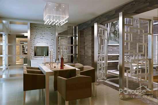 半墙在宽阔的空间中是一个不错的隔断方法,特别是必须要有实体依靠的情况下,这种隔断方式让空间更有层次感。在半墙上以玻璃马赛克或者装饰画等建材进行装修,无疑让空间更加生动。这种半墙隔断,适合使用在餐厅与客厅的隔断或者休闲区域客厅宴客区的分隔中。