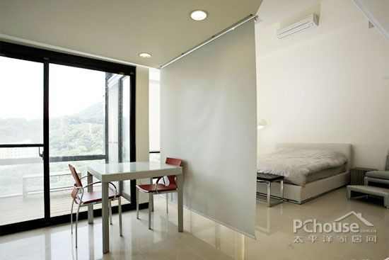 不利用明显的隔断材料,而是简单的一点珠帘或者植物,就给空间一个不同的诠释,软性材料的隔断不仅起到很强的装饰效果,同时也让整体的空间变化柔和起来。