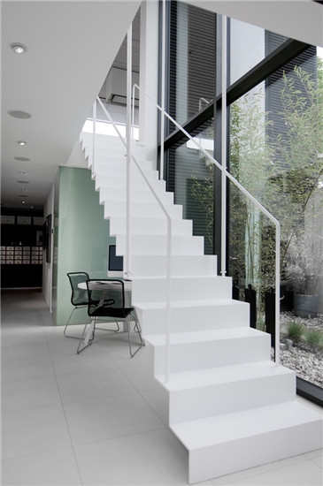 编辑点评:室外楼梯的扶手延续阳台的围墙,玻璃的透明感与水的剔透相类似,这使得这间别墅给人一种水一般的灵动感。