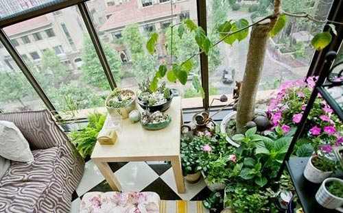 热爱绿植把阳台打造成了一个小小的室内花园,种上一些花花草草,整个阳台被绿意所包围。落地窗更是能一览窗外景色,也能给予绿植足够的阳光养分。