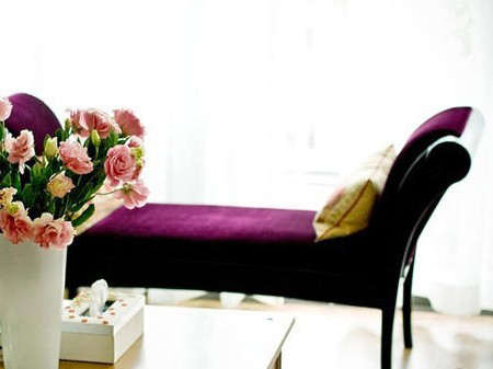 在落地窗旁摆上一个优雅造型的长椅,平日可躺可卧十分便捷舒适。