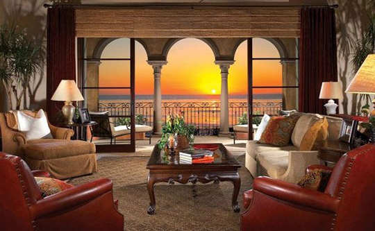 如果你在一个房子里面看见精心镶嵌的天花板上悬挂着穆拉诺岛水晶做的吊灯,门窗都是精致的镶边修饰,豪华的罗马柱子,地板上铺的是光滑的木地板或者大理石,还有软绵绵的地毯--不说了,这绝对是意大利式的风格,除了他们还有谁敢奢侈到毛细血管里?