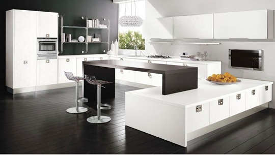 古典意式设计自然是四个字“极尽奢华”,那么现代意式设计,设计联也很乐意用四个字来形容“极简奢华”。线条明晰、设计极简,但仍然可以从一些地方一窥其意式奢华:刷得光滑水亮的厨房墙壁、精雕水晶玻璃吊灯、流线形的高级家具。简约了一点,奢华却不减一分。
