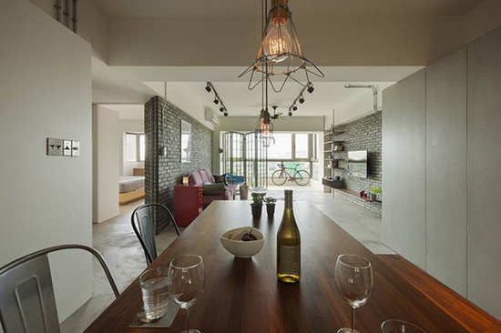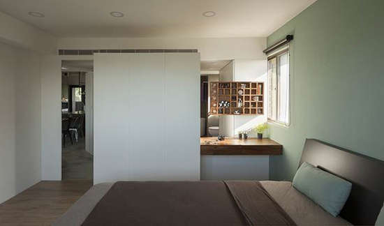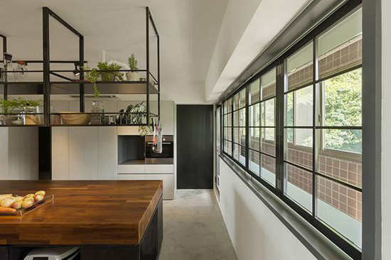 有美丽风景当然要好好利用,尤其热爱大自然现代人,巴不得把景观全部纳入室内,KC Design Studio 与我们分享台北作品中,打造大面推拉窗,保留阳台创造户外休憩区,在室内就看到自然植物。改造自 15 年老公寓,虽然坪数不算小,但屋主始终觉得光线不足、感觉狭隘,没有 35 坪空间感,主要是过多墙壁阻隔,遮蔽光线进入且影响行走动线,重新规划格局后,将部分墙面拆除,集中经常使用到的机能,让公共区域包括客厅、餐厅和厨房挪至中央,采用开放式,达到光线、空气前后阳台相互流动。