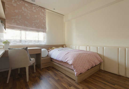 编辑点评:儿童房房床铺与壁面转折处,设计师加入软垫,是考虑到孩子活动时的安全性。