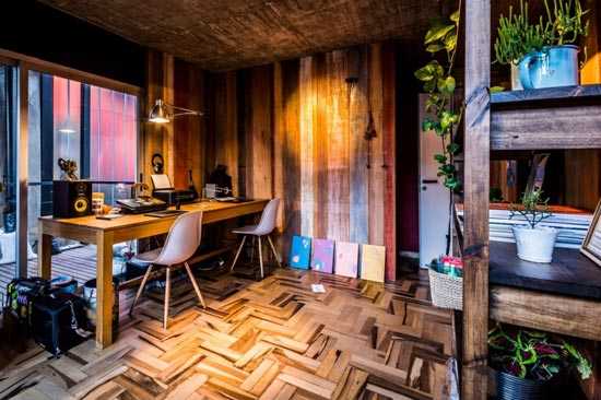 编辑点评:九十度垂直的开窗设计,为书房采光带来了巨大作用,但同时又将书房与外界分隔开来,给予它必要的距离与安静。