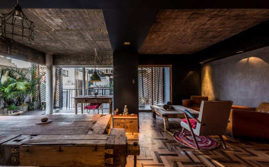 编辑点评:休闲区与客厅的天花板并没有经过太多处理,粗糙的水泥面,不规律的纹路,反而有一种原始的感觉。