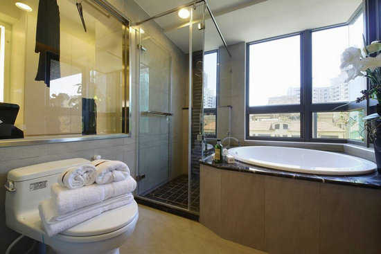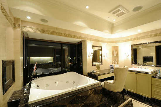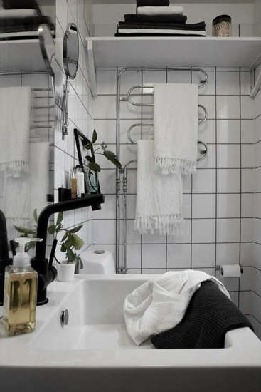 编辑点评:特别的回形架子设计既美观又方便毛巾的区分和取放;白色小平台用来放置要更换的衣物和其他小物品,设计十分贴心。