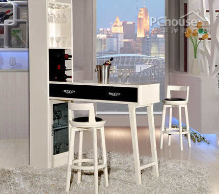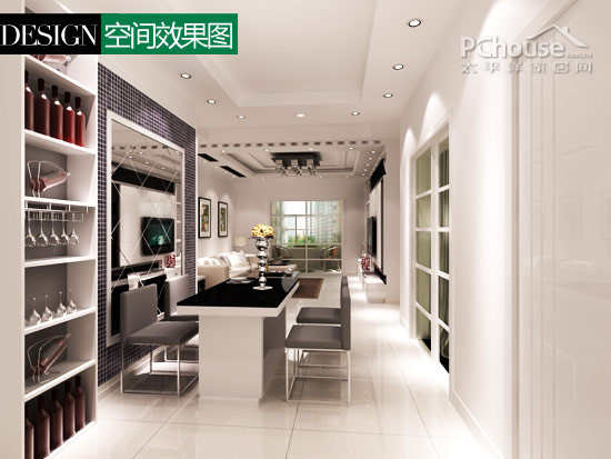 设计解读:以白色为主的现代简约风格,为有品味的老年夫妇设计了酒柜,可根据业主的需求变换收纳与装饰,使空间更显别致。