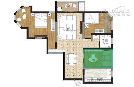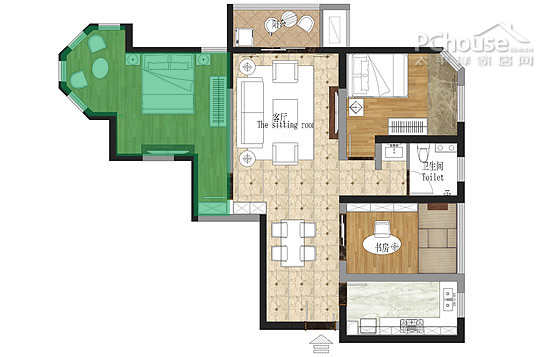 2、把阳台改造,纳入书房空间,可于此处设计榻榻米/单人床,或置入佛台。