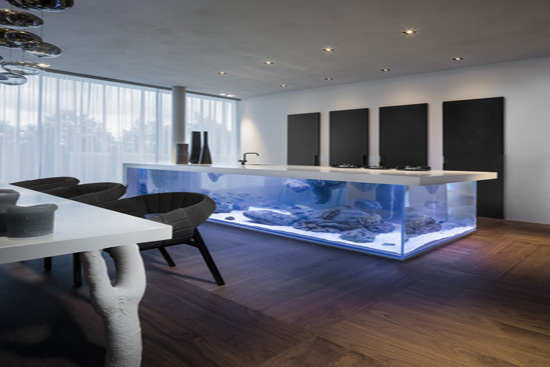完美的厨房,鱼缸里的景色就像岛屿一样。