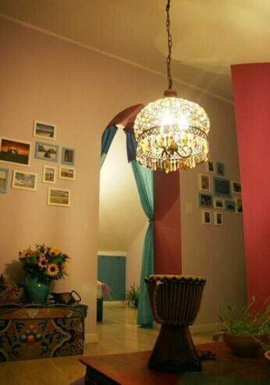 港湾的房子是小复式,四楼是两室两厅一厨一卫,87平的方正结构。五楼的格局差不多只是因为斜顶可用面积少了许多。房间算不上什么风格,混搭吧,不满意,但是说不出哪里不对劲,就是一种怪怪的感觉。田园、地中海、藏式、阿拉伯、波西米亚元素太多太复杂,自己喜欢最重要!