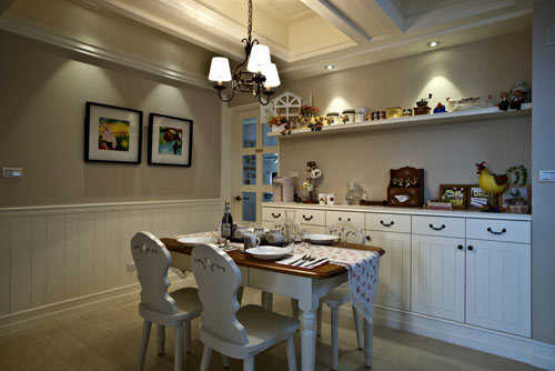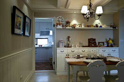编辑推荐:设计师以休闲乡风语汇穿插其中,但使用现代手法诠译,像窗框部分带点古典华丽的元素,在天花部分用立体造型灯加以点缀,粉红色调盈满全室,满足少女浪漫梦幻的绮丽想象。