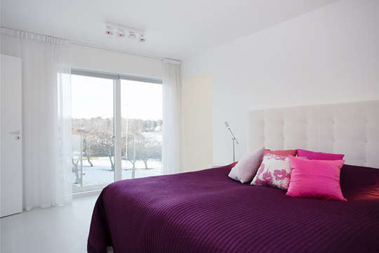 编辑点评:设计师没有用门或任何家具来分隔卧室和卫浴,而是在墙壁上留白,不仅节省空间,还增强空间感。