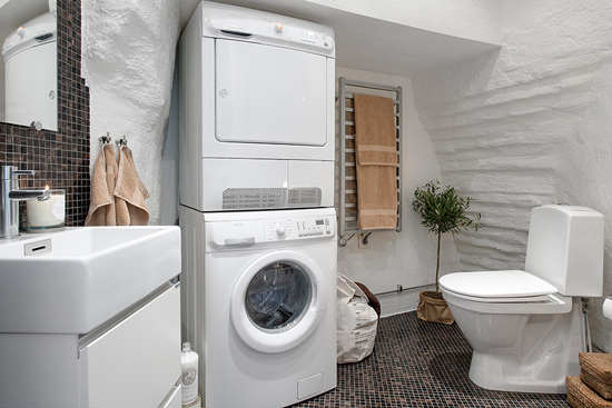 编辑点评:腾空的洗漱台给空间质感带来轻盈美,可收纳展示的椅子置于底部,不占位又实用美观,而木椅旁的稻草更为空间亮点,现代美中透着乡村气息。