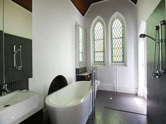 编辑点评:宽阔的挂杆空间方便了衣物和毛巾的收纳,高低设计也契合淋浴和泡浴两种方式的高度,低成本的浴帘隔断有效地保护隐私也不妨碍取放物品。