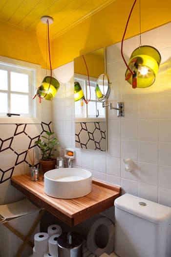 编辑点评:造型独特的拉长式吊灯不仅造型独特,颜色亮丽,还有挑高空间视觉效果的能力,一左一右,增加空间的对称美,实属居室的一大亮点。