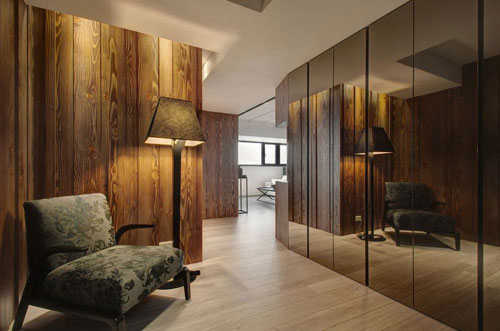 主要建材:原生木皮、类板岩进口砖、铁件、镜面