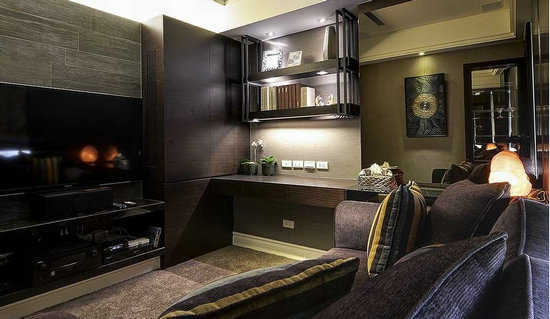 编辑点评:为了彻底运用空间,比沙列空间设计艺术总监张静峰以双面柜的概念,技巧性地透过凹凸面分配内外机能。