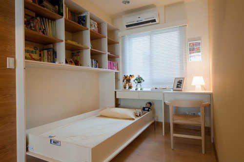 编辑点评:下掀式的收纳床,轻松切换和室与小孩房之间的功能变化。