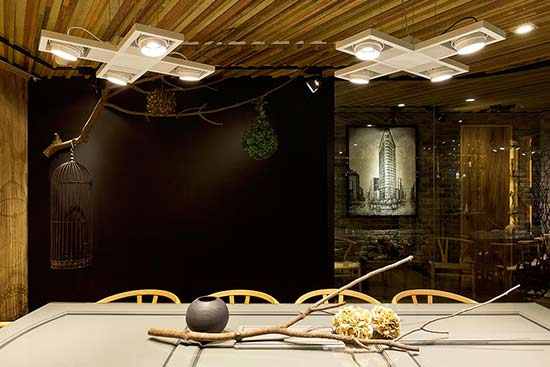 悬挂的鸟笼、绿色植物,桌子上摆放的树枝、瓷器、干花,都市的纷繁喧嚣在这里悄悄隐退,留下一个安静恬淡的世外桃源。
