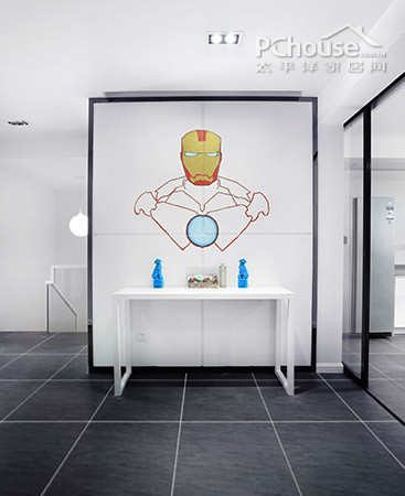 编辑点评:穿过黑白色调的楼梯来到楼上,别样的屏风给人“柳暗花明又一村”的惊喜。丰富艳丽的色彩让人眼前一亮,画笔勾勒的图案彰显着艺术感,让人不禁驻足欣赏、回望留恋。